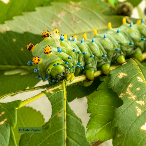 The caterpillars kept me busy finding fresh leaves for them to eat all summer long. For their final instar I went out daily in search of delicious and tempting greens for them.