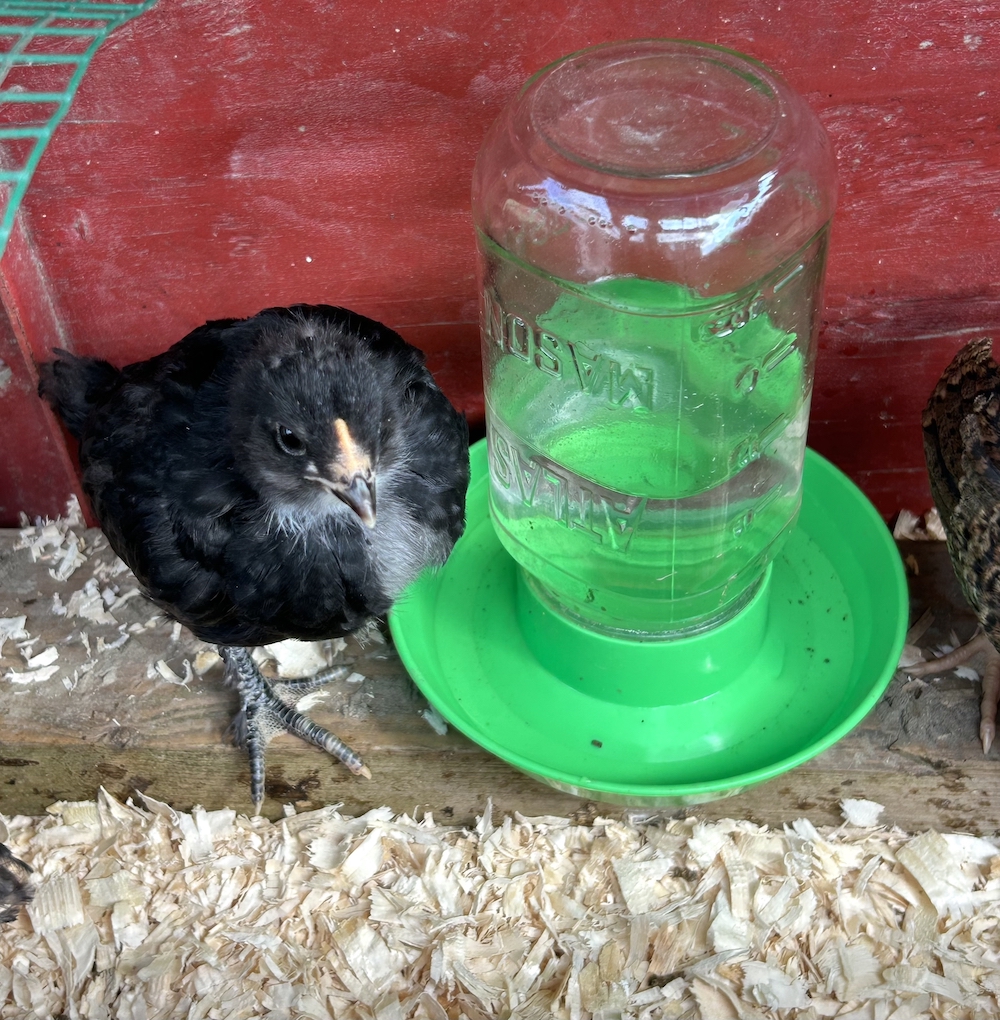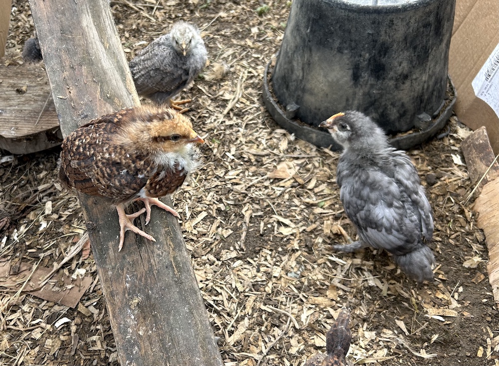 A big step, according to the article, is to notice what makes us happy. I’ll start by describing how happy the chicks were to be in their “big girl” space. My partner and I recently added 6 chicks to our flock (bringing the total to an even dozen). They are a couple of weeks old now but are still too young to go out with the big girls. The adults will bully the youngsters, so I keep them separate until the littles can hold their own.