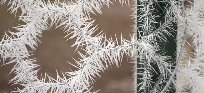 It’s finally feeling like fall here in Vermont. We had a hard frost with beautiful results last night. When I woke everything was brittle with cold. A heavy layer of frost rimed the branches of trees and the wires of my chicken fencing. When I knocked off the rime I almost expected to … Continue reading First frosty morning